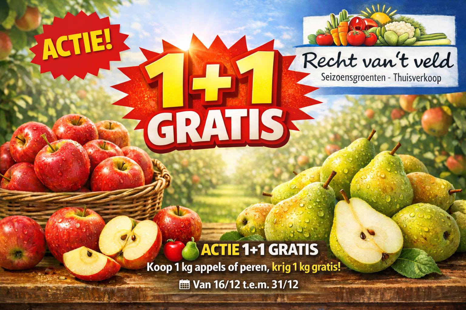 Koop 1 kg appels of peren, krijg 1 kg gratis!